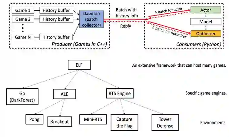 与其他在一个界面包含单个游戏的 AI 平台不同,ELF 能把一批游戏包括进一个 Python 界面。这使得模型和强化学习算法能够在每次迭代中包含一批游戏状态,降低了训练模型所需的时间。