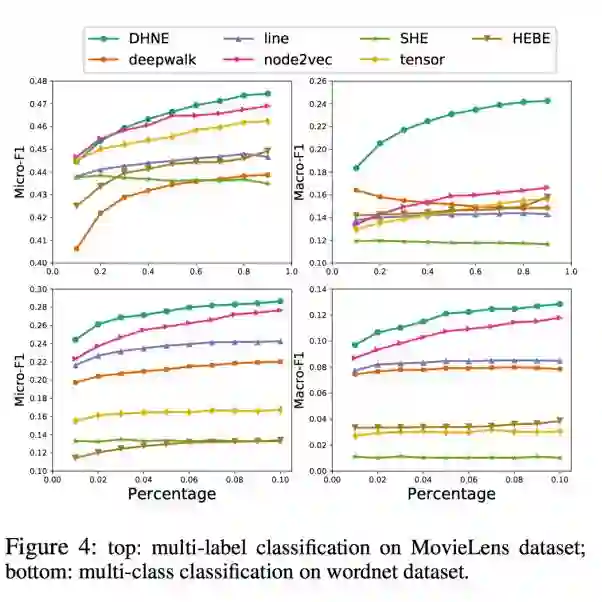 图中:上:MovieLens数据集上的多标签分类问题;下:wordnet数据集上的多分类问题。