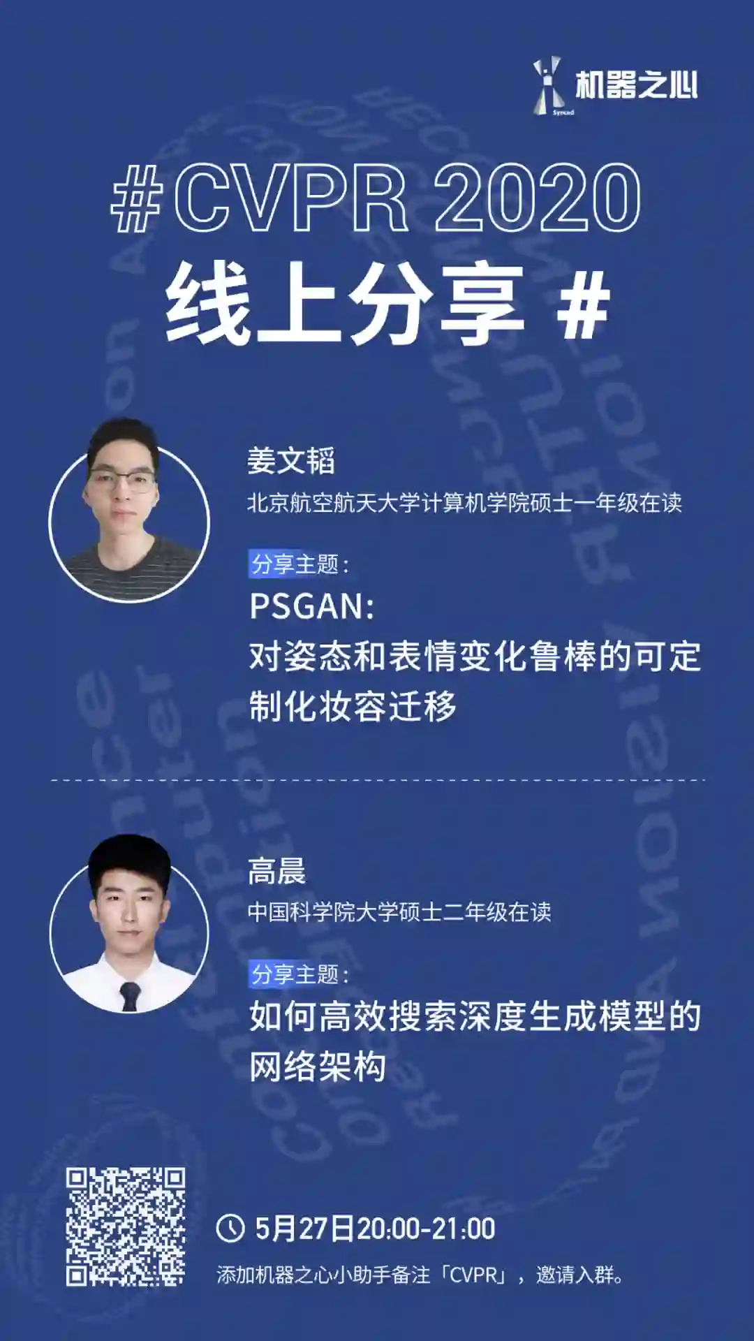 线上分享将在「CVPR 2020 交流群」中进行,加群方式:添加机器之心小助手(syncedai6),备注「CVPR」,邀请入群。入群后将会公布直播链接。