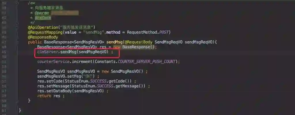 cim-server 收到消息后会在内部缓存中查询该 userID 的通道,接着只需要发消息即可。