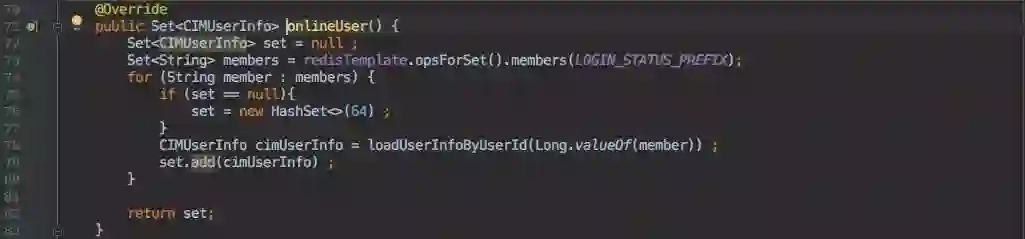 实现也很简单,也就是查询之前保存 ”用户登录状态的那个去重 set “即可。
