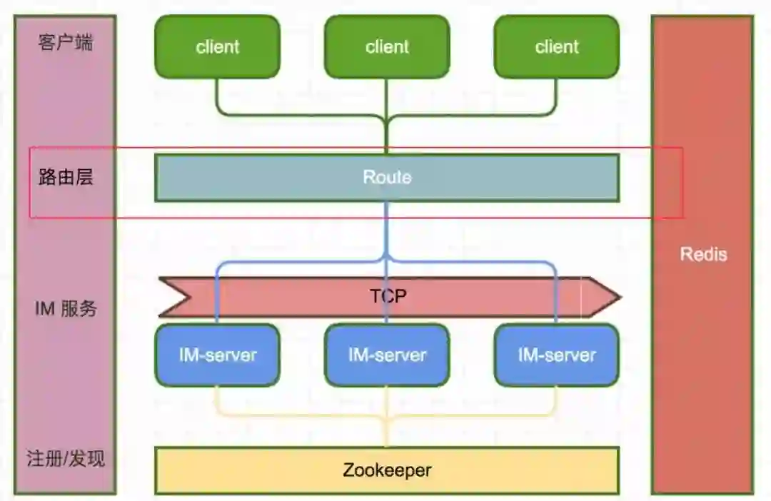 登录成功从 Zookeeper 中选择可用 im-server 返回给客户端,并保存登录、路由信息到 Redis。