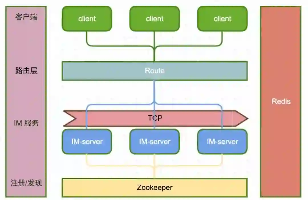 接下来重点看看具体的实现,比如群聊、私聊消息如何流转;IM 服务端负载均衡;服务如何注册发现等等。