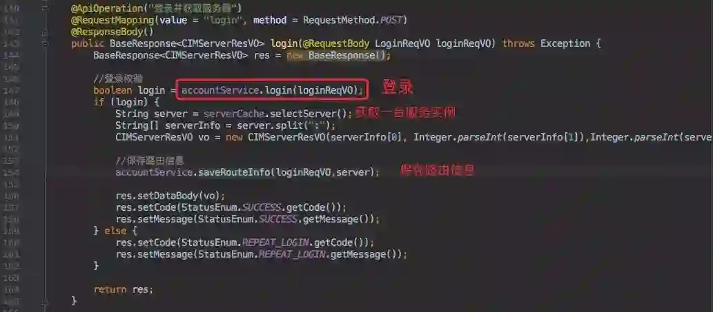第一步也就是登录,需要在启动时调用 Route 的登录接口,获得 cim-server 信息再创建连接。