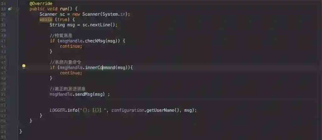 由于我自己不怎么会写界面,但保不准有其他大牛会写。所以客户端中的群聊、私聊、获取在线用户、消息回调等业务(以及之后的业务)都是以接口形式提供。