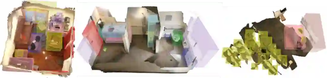下图为 ScanNet 数据集中室内场景的 3D 语义分割结果: