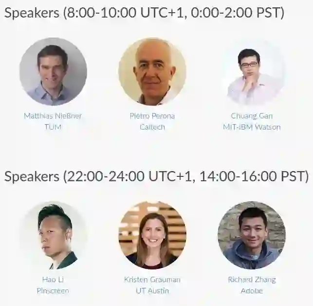 本次 Workshop 的组织者由来自 MMLab(CUHK,NTU)的 Researchers,UCSD 的新晋助理教授王小龙,NVIDIA 的刘思飞,各个 Challenge 的论文作者,以及 Amazon 的 Researchers 组成。