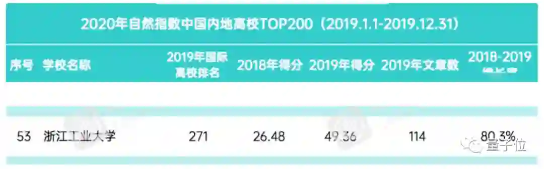 在今年4月30日,发布的2020自然指数年度榜单(Nature Index 2020 annual tables)中,浙工大表现亮眼。