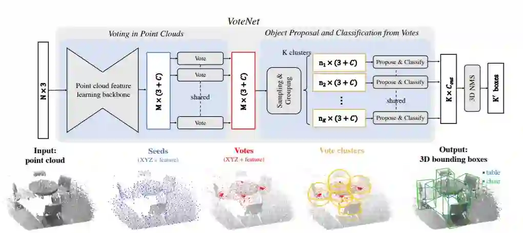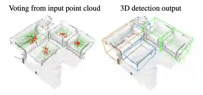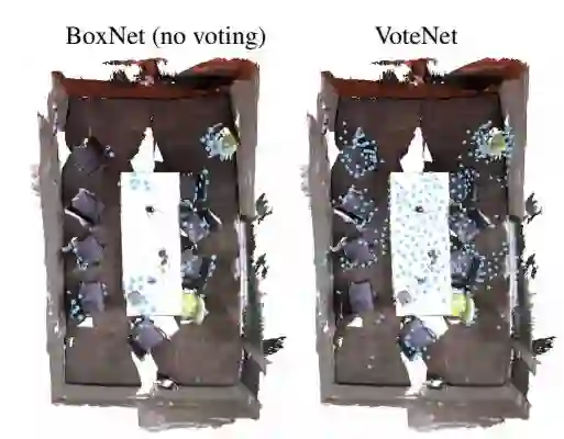 在通过端到端可微架构进行深度学习的背景下,重新制定了霍夫投票,我们称之为VoteNet。