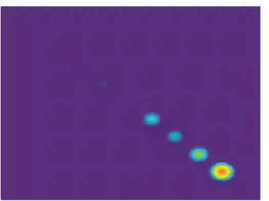 如果将不同演化长度的图像合成动图,就可以看到量子行走随时间演化的过程,看到概率分布强度如星星般闪烁的动态变化。