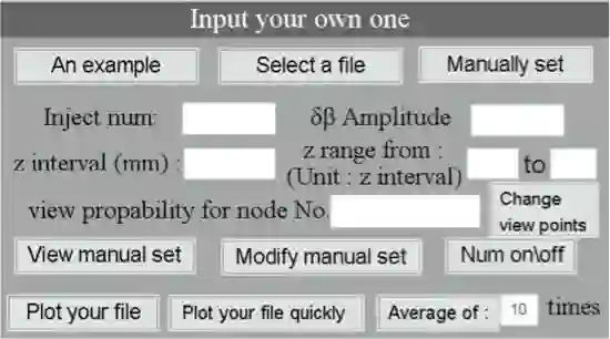 软件界面中,相比量子行走模块(QW),增加了对 Δβ 设置,可以对指定的波导设定 Δβ 的随机变化幅度,以及选择看随机变化多次的统计平均结果。同时可以看到指定波导上概率分布随时间的演化结果。