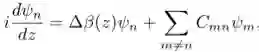 H 就是包含波导结构信息的哈密顿量矩阵,它的对角线上是βi, 即沿自身波导 i 的传输系数,非对角线上是 Cij,即波导 i 与 j 之间的耦合系数,与波导间距呈指数衰减关系,因此波导分布确定时 Cij 就可相应地确定。波导传输长度 z 代表演化时间,而光子在波导截面的分布则体现了实时的量子行走演化图形。通过波导的设计就可以构建指定的哈密顿量,实现特定的专用量子计算和量子模拟方案。
