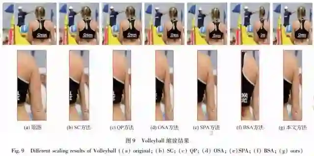 为证明本文方法的有效性,对大量图像进行多比例缩放测试,并与现有方法进行比较。在同比例缩放下,本文方法可以更好地保持图像中的主体区域,以及特征直线,使放缩后的图像整体具有更好的视觉效果。本文方法的计算时间小于0.19 s,时间成本与现有方法大致相同。
