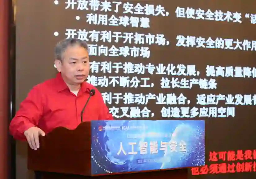 最后一场报告,中国科学技术大学网络空间安全学院执行院长俞能海教授作了题为“人工智能安全研究新进展”的报告。俞能海教授针对人工智能安全这一主题进行聚焦,从保护AI赋能系统、利用AI提升安全防御、应对AI的恶意应用三个维度,详细解读了人工智能安全的含义,并围绕模型水印、对抗样本攻防、Deepfake深度伪造及检测三个具体问题,介绍了团队在人工智能安全领域的研究新进展。