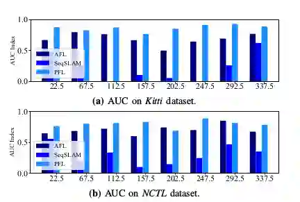 图5 不同航向取向情况下地点识别结果的AUC指数。