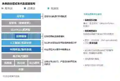 从技术上总结,中央计算机-层-区的概念将建立起智能汽车的新构架。区是局部控制、感知与执行单元,层是按照职能划分的资源池,中央计算机是真正的决策大脑,面向应用/服务,调用各层资源,执行高级决策,由区控制单元执行决策或完成态势感知任务。