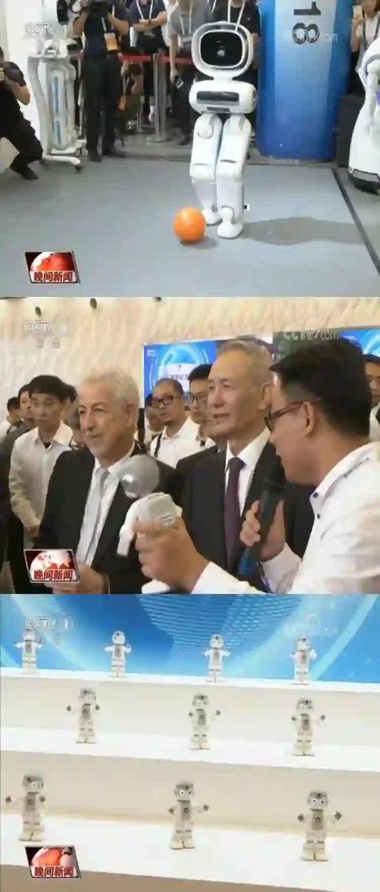 (中央电视台《晚间新闻》对世界机器人大会和优必选机器人进行报道)