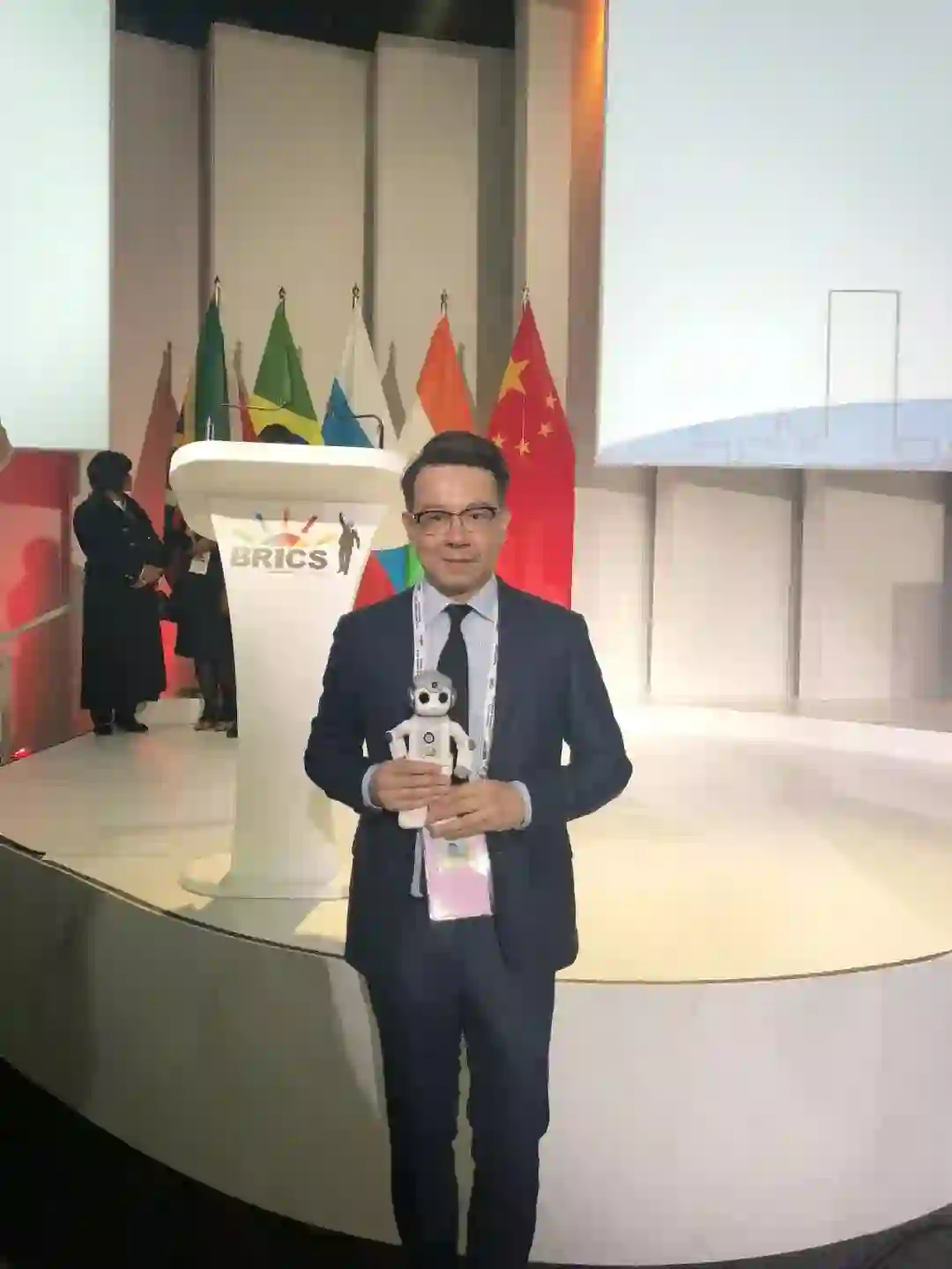 2018年7月25日至27日,习近平连任国家主席后首次出访,应邀出席在南非约翰内斯堡举行的金砖国家领导人第十次会晤,优必选创始人兼CEO周剑作为国内人工智能和机器人企业的代表随国家领导人访问南非并参加金砖国家工商论坛,与中非企业家共同探讨合作发展之路。优必选最新一代机器人悟空也亮相金砖国家工商论坛,受到与会领导和嘉宾的喜爱。在南非教育部的邀请下,悟空机器人还作为AI亲善大使到当地托儿所及学校当起了AI支教老师,和小朋友度过了奇妙而愉快的一天。