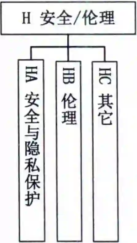H安全/伦理标准位于人工智能标准体系结构的最右侧,贯穿于其他部分,为人工智能建立合规体系。