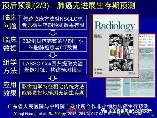 自2012年概念提出以后,影像祖学的概念到2014年得到进一步延伸,走向临床。影像组学从研究走向临床,典型代表就是2014年这篇文章。