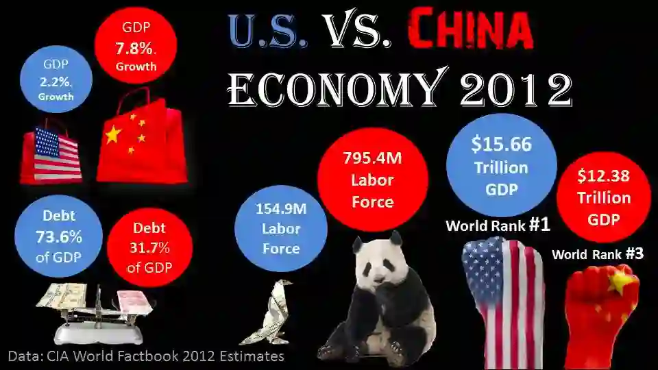 2018 年中美“贸易战”,美国的媒体为了向美国老百姓说明中国经济发展的情况,特别是对美国经济的威胁,一定要使用到中国经济和美国经济相关数字。那么,你觉得这些数字怎么展示?
