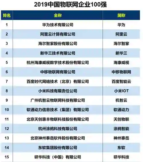 近日,《互联网周刊》&eNet研究院发布了“2019中国物联网企业100强榜单”,其中,华为、阿里、海尔位列前三,新华三、海康威视、中移物联网、小米IoT等物联网企业紧随其后。