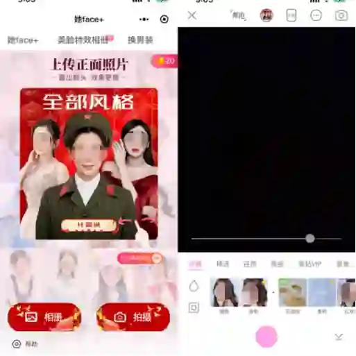 一般的拍照软件都会有很多不同的风格模板选择,她face+也为用户提供了很多不同的换装模板,但是用户总反映不会使用,直到有一次,他们将用户主动选择模板更改为「任意换」。