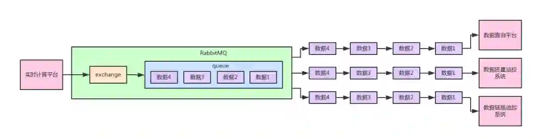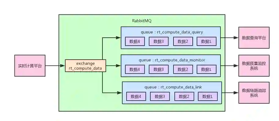 这样每个订阅这份数据的系统其实都有一个属于自己的队列,然后队列里被会被exchange路由进去实时计算平台生产的所有数据。