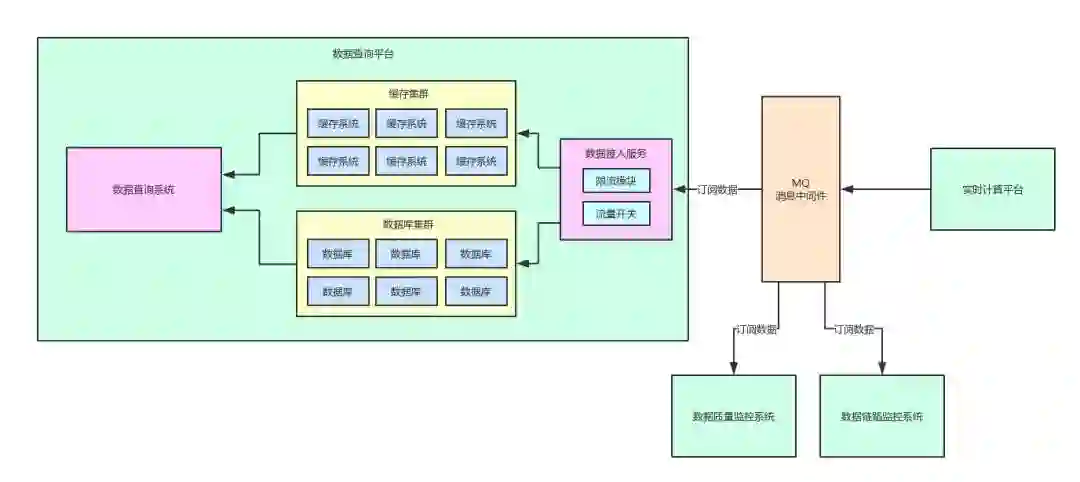 数据查询平台会订阅这份数据,并落入自己本地的数据库集群和缓存集群里,接着对外提供数据查询的服务。