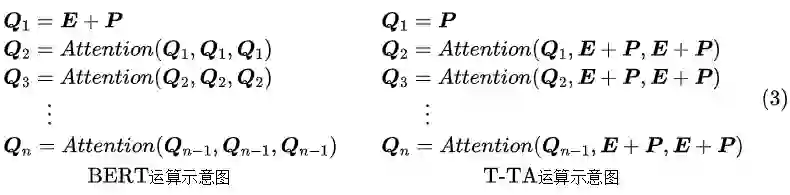 为对应的位置向量,那么 T-TA 与 BERT 的计算过程可以简写为: