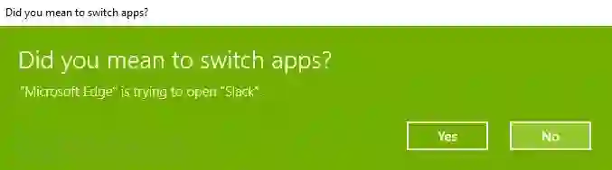 但这个技巧存在一个小小的不足,那就是当用户点击其中的恶意链接后,浏览器会跳出如下的应用切换提示框,只有点击“Yes”后,用户Slack程序的文档下载存储位置才会发生改变: