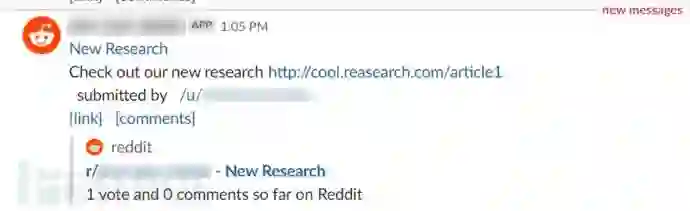 Slack群组可以订阅RSS推送,并可以用包含链接的站点更新发送给群组。为此,我们可以想像一种场景,假设某个非常受欢迎的reddit.com论坛模块,有好多Slack用户都订阅了这个论坛,那么我在上面发布一个经恶意构造的slack://settings+link链接会怎样呢?作为测试之用,我在一个私人Reddit论坛中进行了发贴,发贴中包含有一个正常的超链接。由于Reddit论坛不允许直接的slack:// links链接,所以我又构造了从正常的超链接跳转到slack:// links链接的方法,如下: