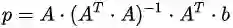 将b向量投影到二维子空间上,即子空间基的方向。首先定义二维子空间的基a1,a2(A=[a1,a2]),则投影 ,其中