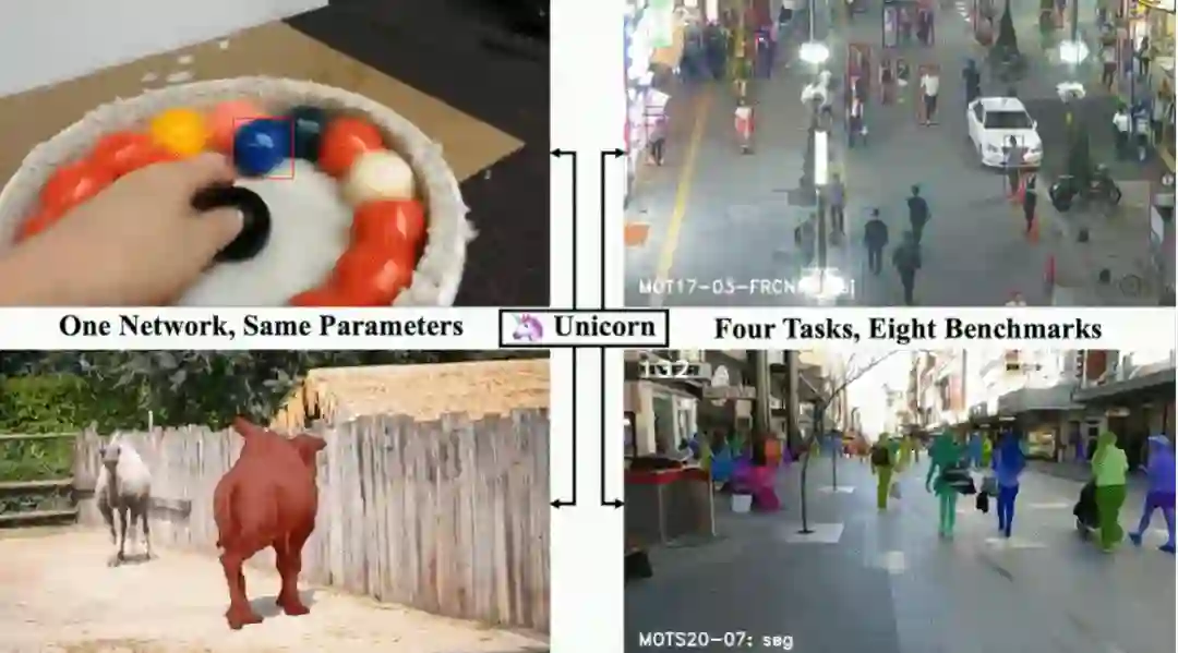 现在,来自大连理工大学、字节跳动和香港大学的研究者提出了一种统一的方法,称为 Unicorn,它可以使用相同的模型参数通过单个网络同时解决四个跟踪问题(SOT、MOT、VOS、MOTS)。