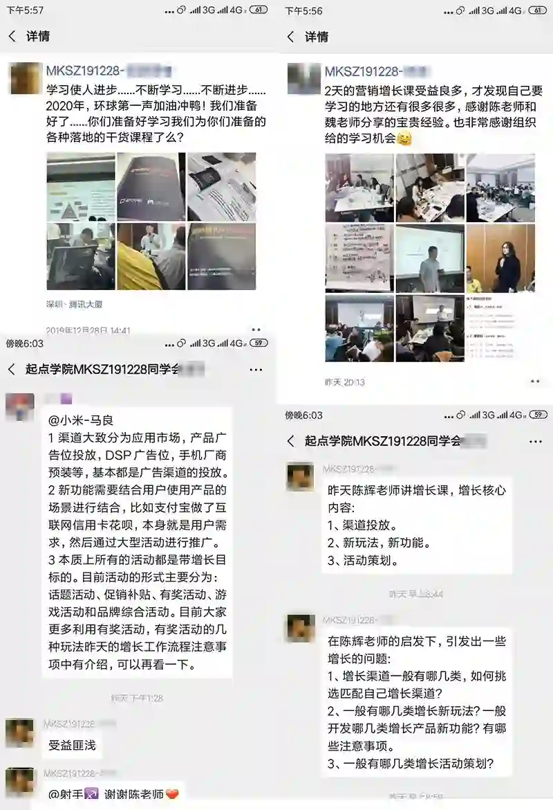 每期报名后的学员都会进入专属的学习交流圈子。最新最及时的热点资讯,不断积累的资源和壮大的校友圈子,在这里你或许可以找到行业知己,合作伙伴和人生挚友。