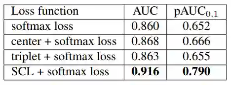 为了验证SCL损失,研究人员对各种损失进行了实验,包括centerloss、triplet loss等,结果如下所示: