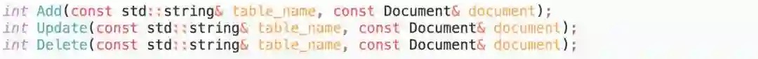 更新包括对doc的增加、修改、删除等操作。参数类型Document,表示一条doc记录,内容为待更新的doc的字段内容,key为字段名,value为对应的字段值。操作成功返回0,失败返回非0,可通过GetErrorString接口获取错误信息。