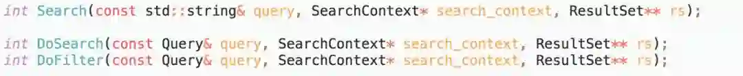 Search:返回正排过滤后的ResultSet,内部组合了对DoSearch和DoFilter的调用