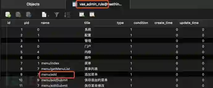 接着继续确定数据表中的condition字段是否为用户可控,分析后可以发现,在后台的系统/节点 [http://127.0.0.1/index.php/admin/rule/index.html](http://127.0.0.1/index.php/admin/rule/index.html)页面中存在对该数据表的操作功能,而附加规则对应数据表中的condition字段: