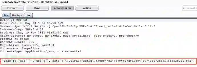 测试后发现这里的上传点果然只对文件后缀进行了前端校验,直截了当上传.php后缀的文件: