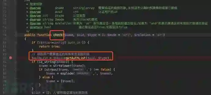 继续查看getAuthList的调用情况,是在check函数中: