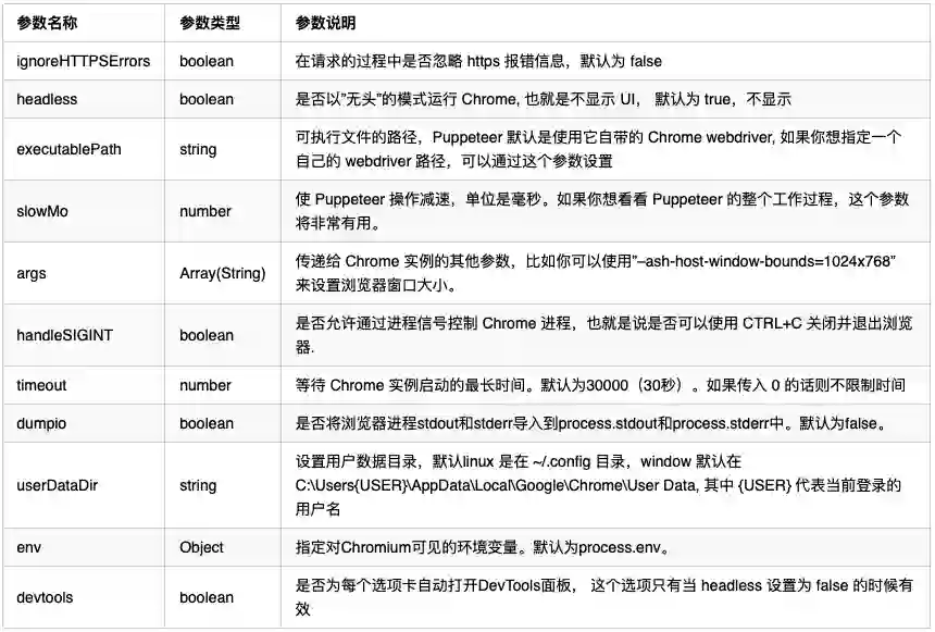 browser = await launch({'executablePath': self.config["Chromium_path_linux"], #设置浏览器路径'headless': True,"autoClose": True,"args": ['--disable-extensions','--hide-scrollbars','--disable-bundled-ppapi-flash','--mute-audio','--no-sandbox','--disable-setuid-sandbox','--disable-gpu',],'dumpio': True})