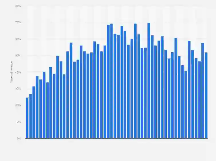 iPhone 全球收入在苹果营收中的占比
