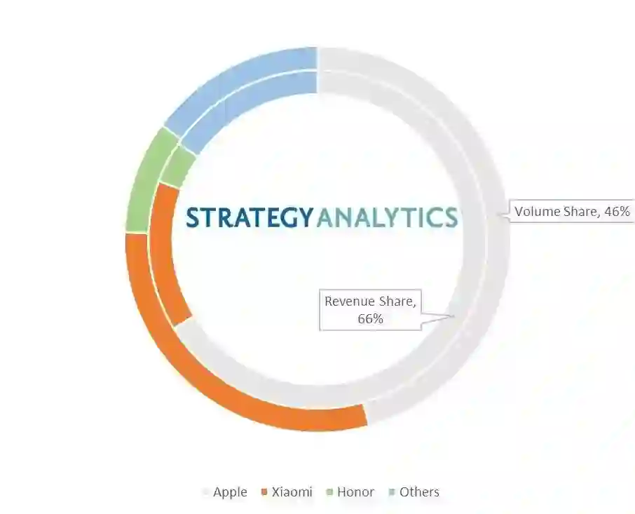 据 Strategy Analytics 的估计,苹果通过 618 创造了 415 亿元(约 63 亿美元)收入,iPhone 销量接近 700 万部,收入份额占到 66%,销量份额占到 46%。