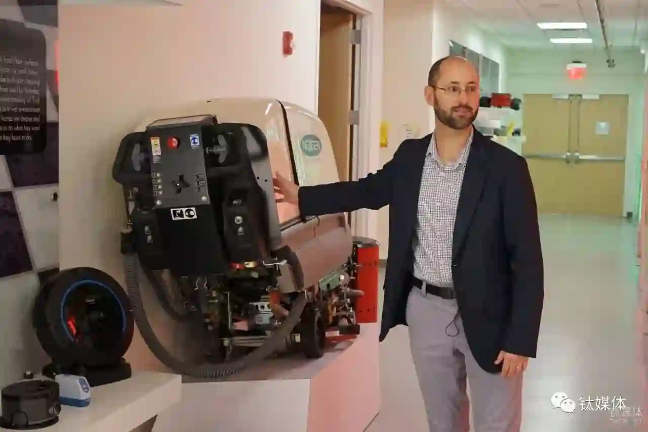 在 iRobot 位于美国贝德福德总部的展厅内,iRobot技术副总裁 Chris Jones向钛媒体记者介绍了 iRobot 为Johnson Wax 建造的大型清洁机器人,该产品主要用来清洁机场和超市等场景。这个机器人最后没有获得巨大的商业成功,但这次项目的经验却让iRobot学习积累了有关清洁的专业知识,也预示了Roomba——这款在iRobot发展史上举足轻重产品的诞生。