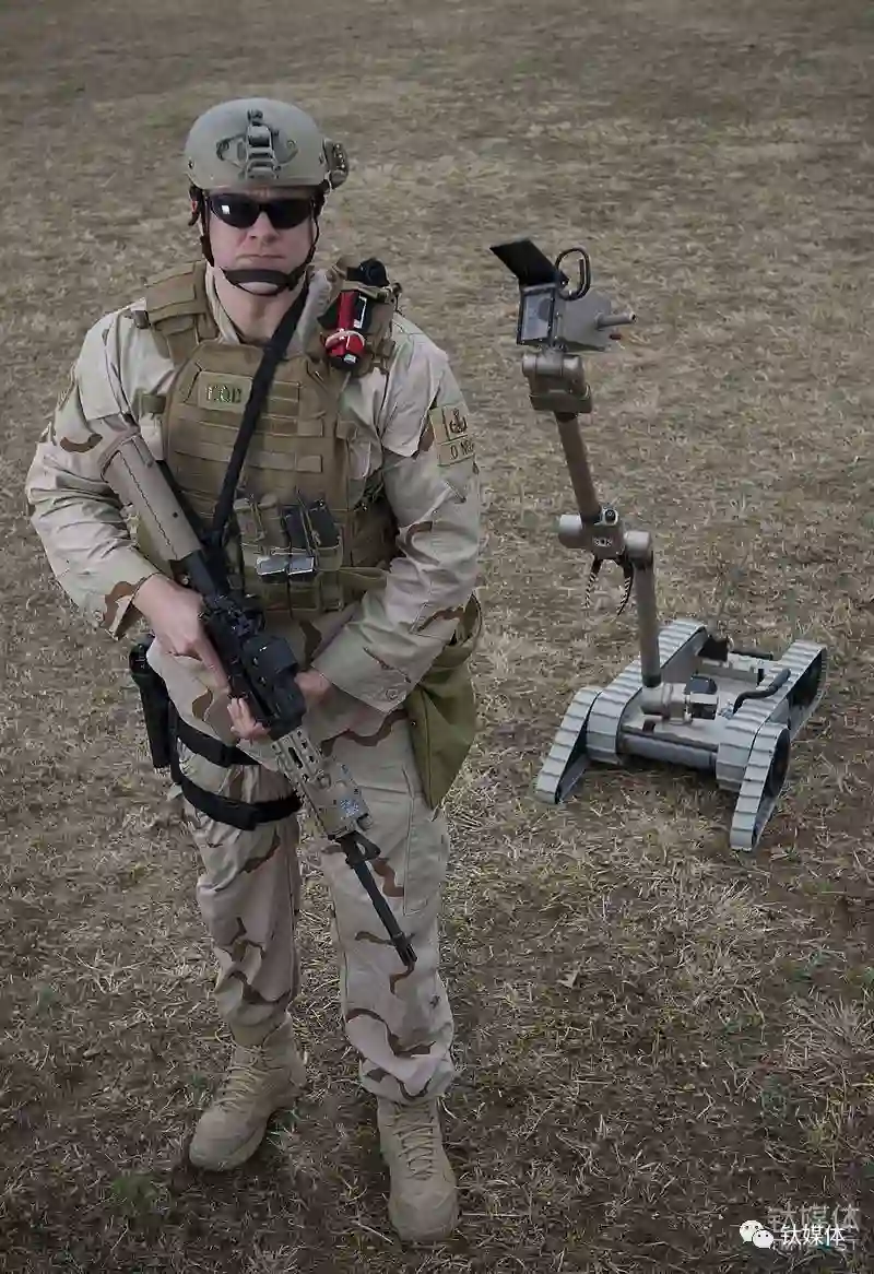 一名美国士兵与PackBot的合影