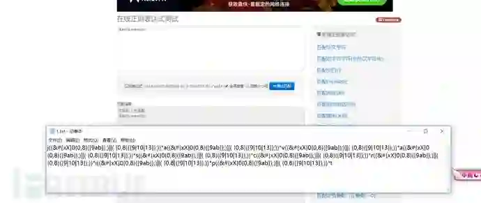 2.另外后面的代码会根据黑名单生成正则表达式,我拿其中一个测试,这段代码会生成正则表达式: