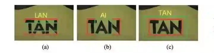 如图1.1中,红框代表“LAN”字符ground truth(GT),绿色框代表detection box。在GT与detection box有相同IoU的情况下,识别结果差异巨大。所以Detection对后续Recognition影响非常大!