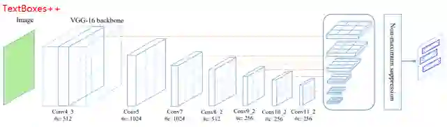 TextBoxes和TextBoxes++模型都来自华中科技大学的白翔老师团队,其中TextBoxes是改进版的SSD,而TextBoxes++则是在前者的基础上继续扩展。