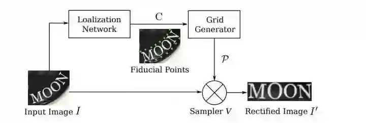 对于弯曲不规则文本,如果按照之前的识别方法,直接将整个文本区域图像强行送入CNN+RNN,由于有大量的无效区域会导致识别效果很差。所以这篇文章提出一种通过STN网络学习变换参数,将Rectified Image对应的特征送入后续RNN中识别。